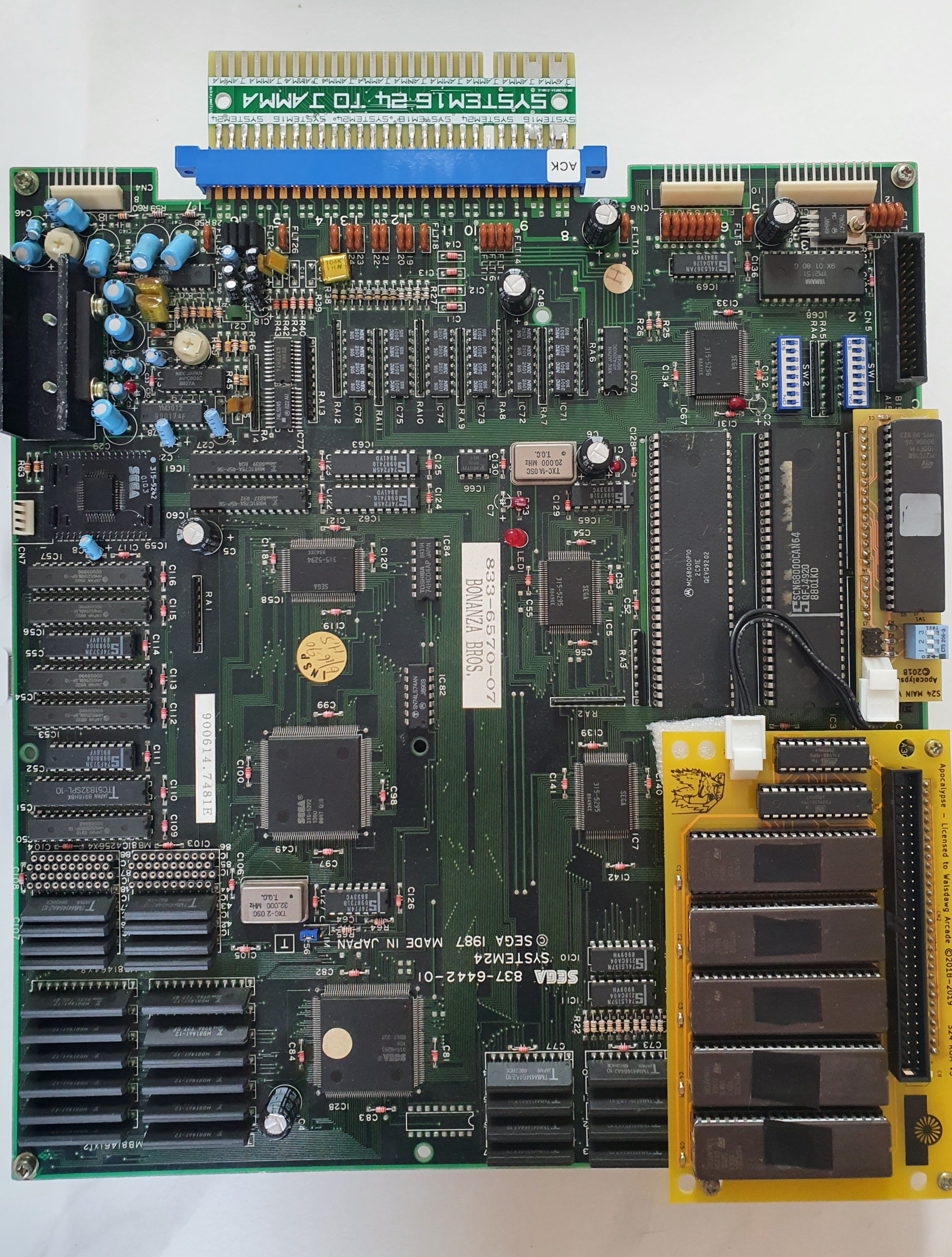 기판은 우연히 국내의 판매자에게서 보난자 브라더스로 구매했다. 구동 확인을 할 수 없는 상황이라 정크로 구매했는데, 구동해 보니 놀랍게도 보난자 브라더스가 아니라 “숙제를 잃어버렸습니다” 였던가? 그런 퀴즈 게임이었다. 황당했지만 싸게 구매했기에 이해했고, 다크소프트의 시스템 24 멀티킷을 구매해서 게인 그라운드까지 구동했다.